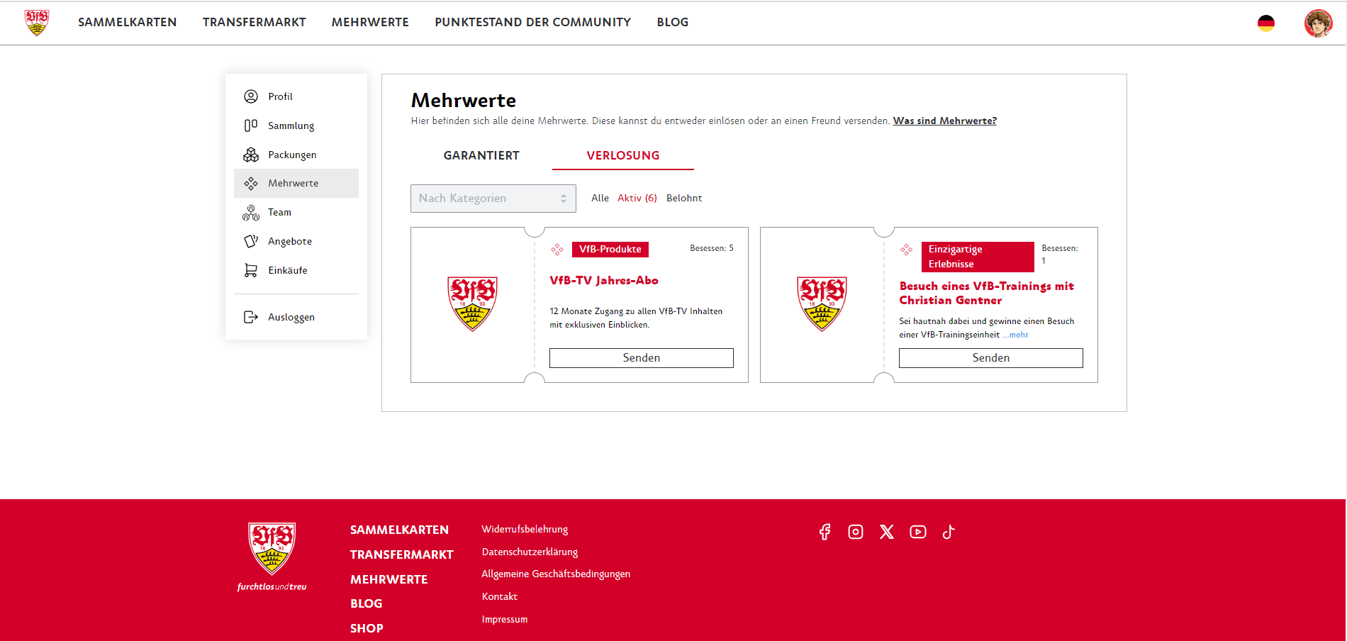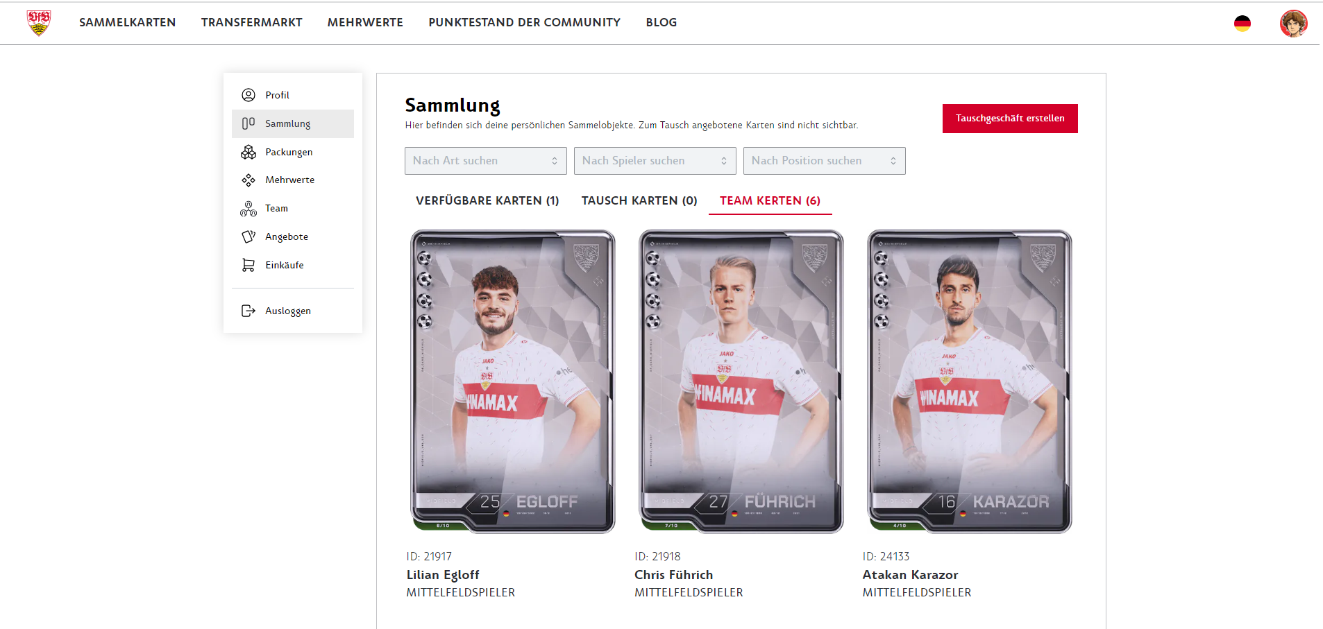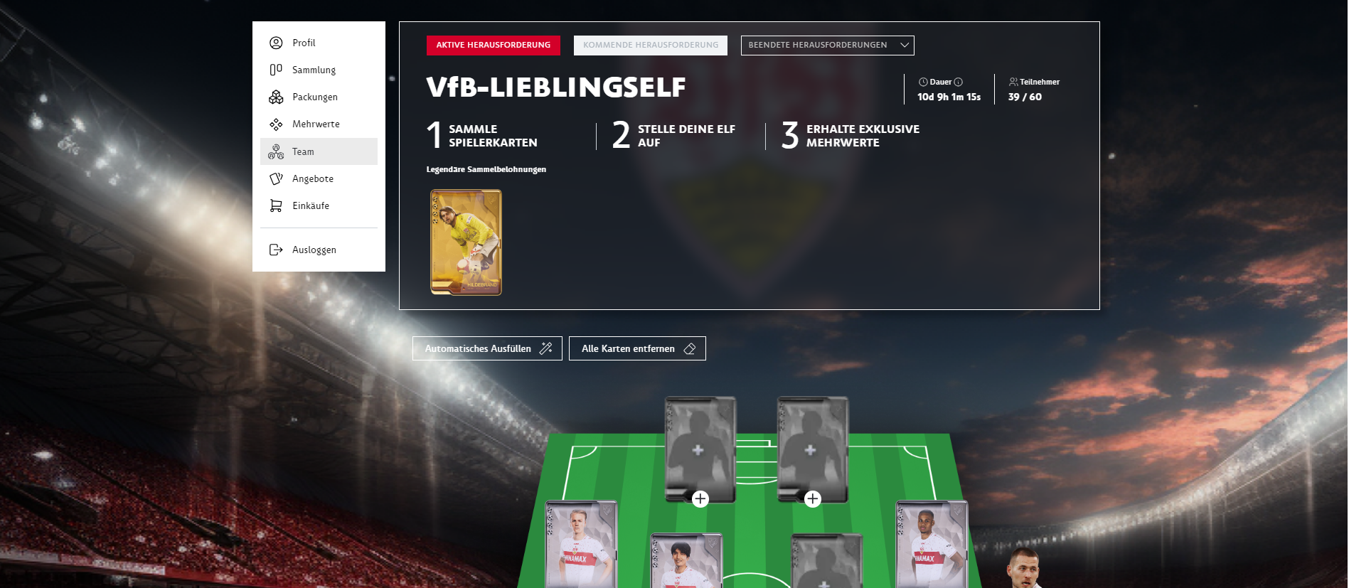 The collectibles can be used to take part in challenges. These challenges can, for example, consist of putting together a complete team of VfB players. The current reward is a Timo Hildebrand legend card. In the future, there will be more exciting challenges and rewards to increase the additional collecting and trading character of the cards. You can find the current challenge under your profile in the Team menu item.