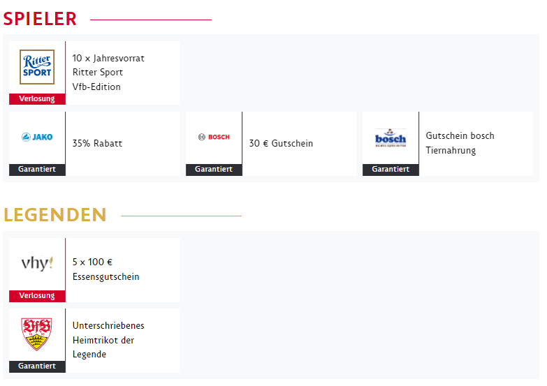 Both cards come with guaranteed perks from our partners as well as tickets to take part in raffles for exclusive VfB products, unique experiences and partner products. We are working on integrating more partners to increase the perks for you. Each legend card is guaranteed to come with a signed home jersey of your legend.